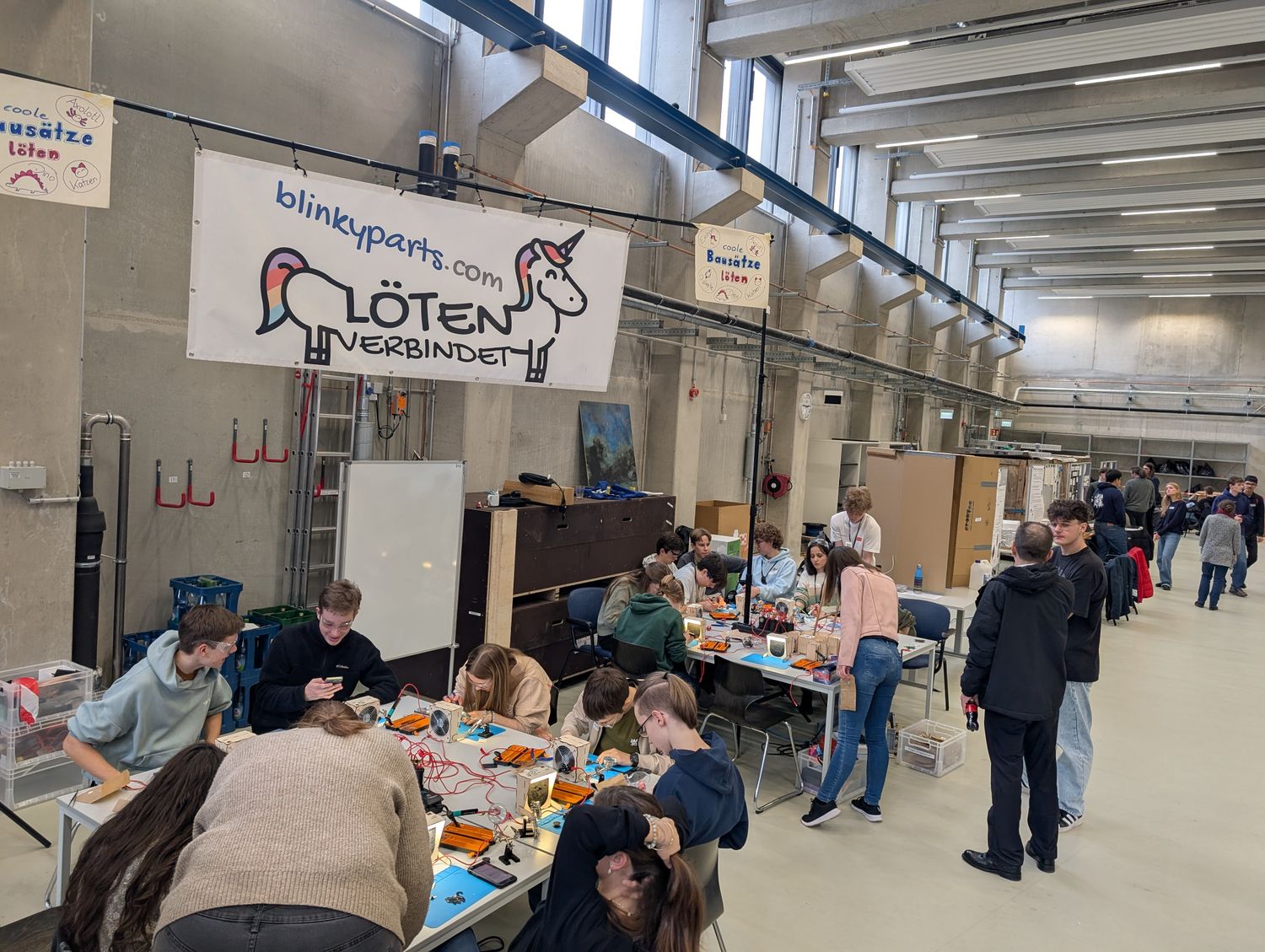 Während Jugend forscht haben die Kinder immer wieder mal freie Zeit. Wir nutzen diese Zeit, um den Kindern die Lötwelt vorzustellen oder mit den fortgeschrittenen Lötsets ihre Fähigkeiten weiter auszubauen.