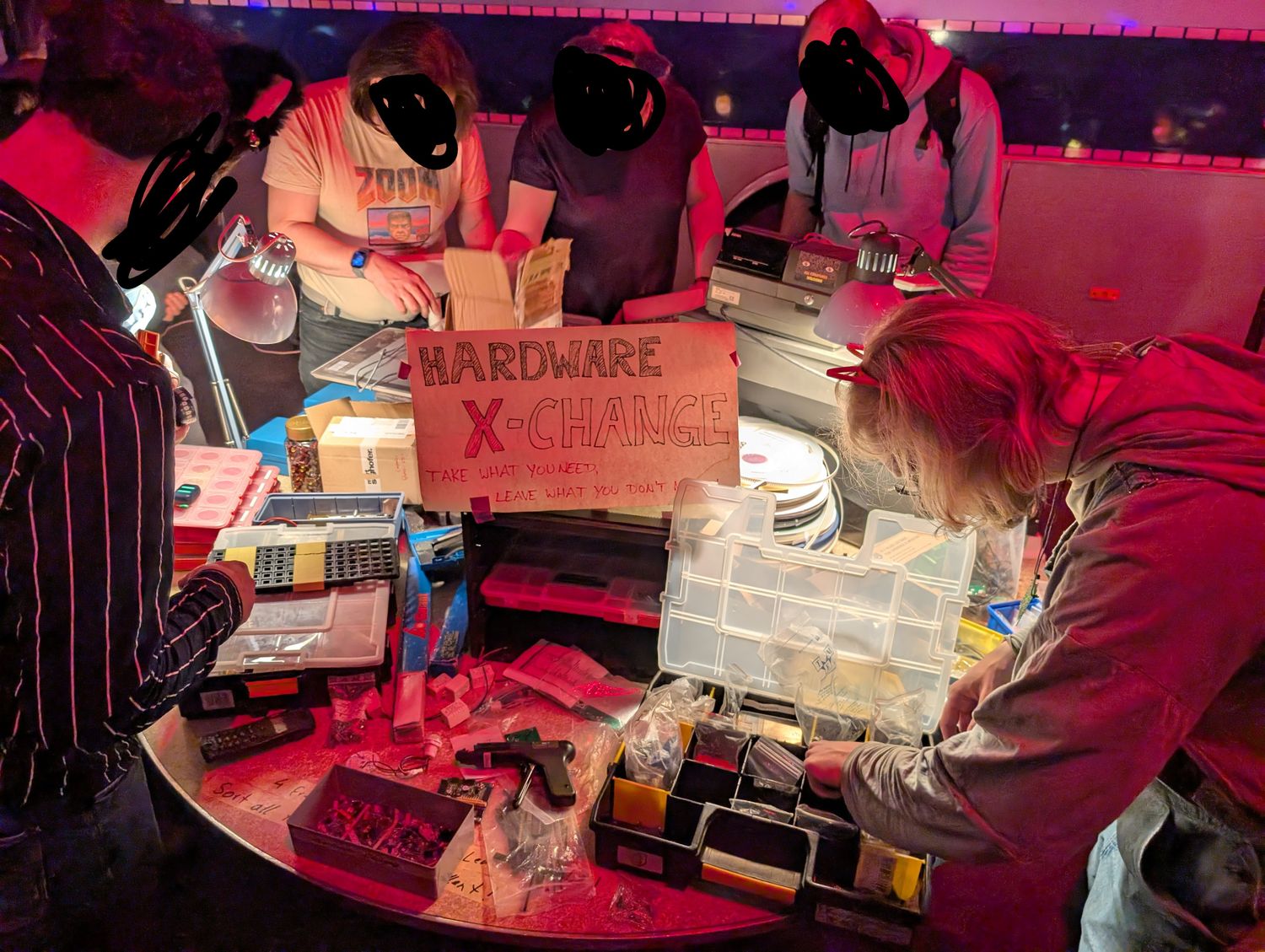 Ein Ort/Tisch an dem $menschen ihre übrigen Bauteile/Hardware legen können, damit andere was basteln können, sich Ersatzteile nehmen können oder kreativ werden können.