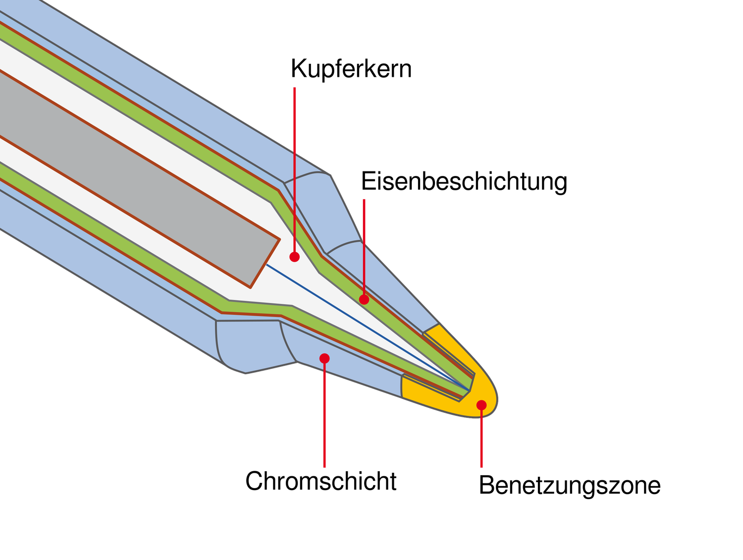 Lötspitzen bestehen aus mehreren Schichten, die jeweils eine spezielle Funktion haben: